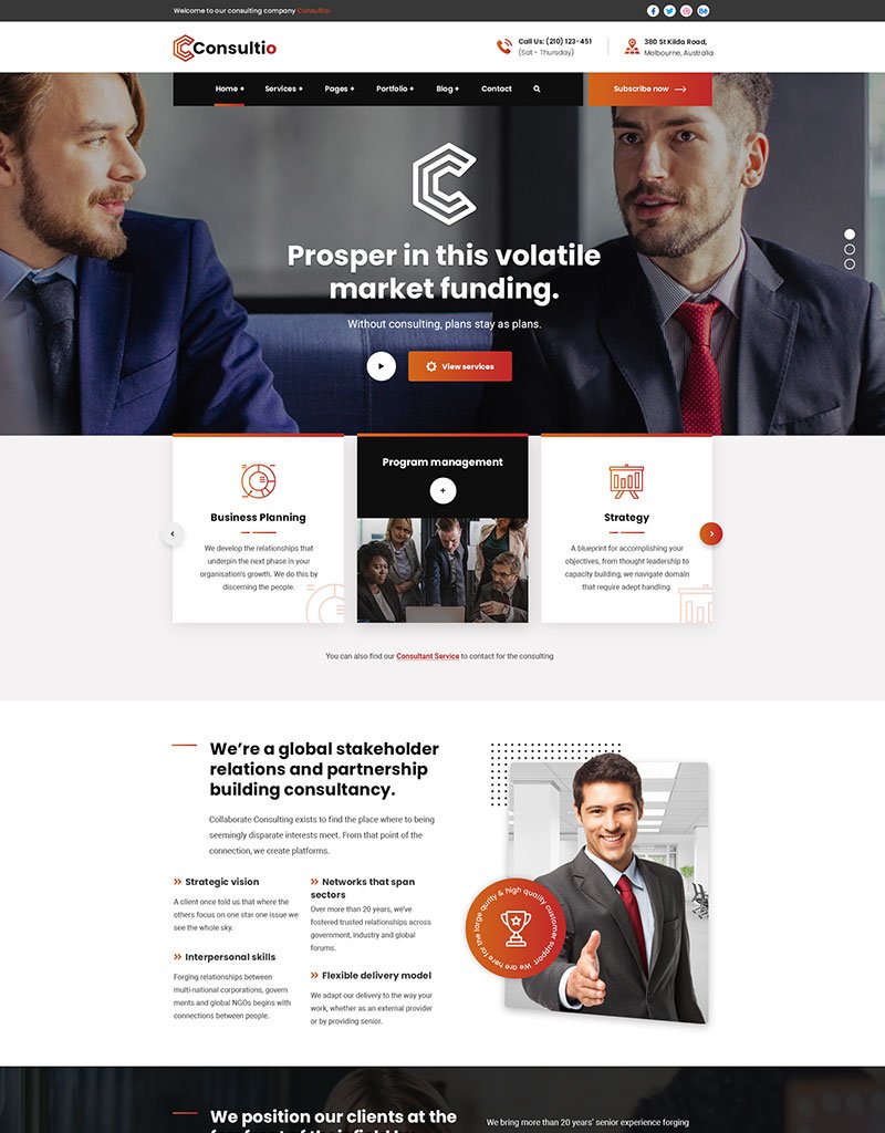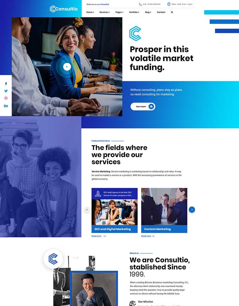 Consultio is a Consulting, Finance & Business Theme. It is a clean and modern Business design. You can use it for any kind website like consultancy, Adviser, Business, Consultant, Corporate, Finance, Financiall.